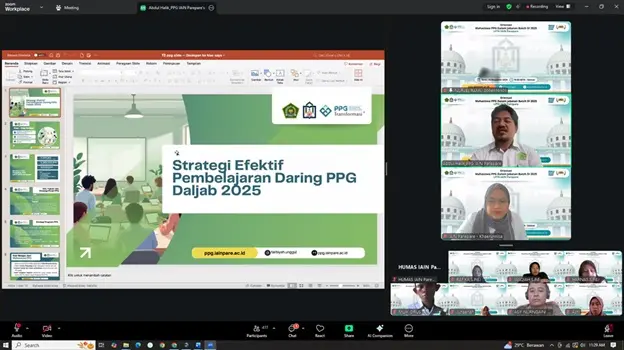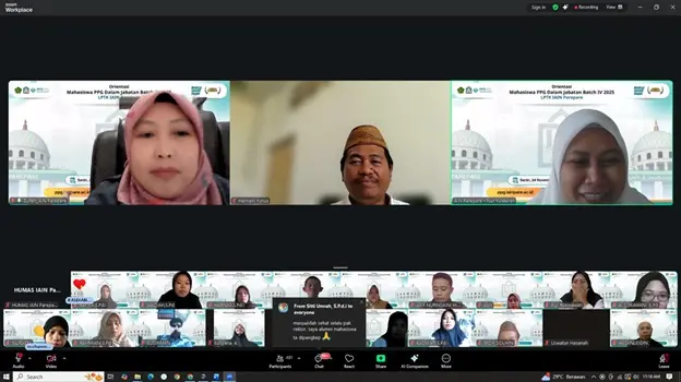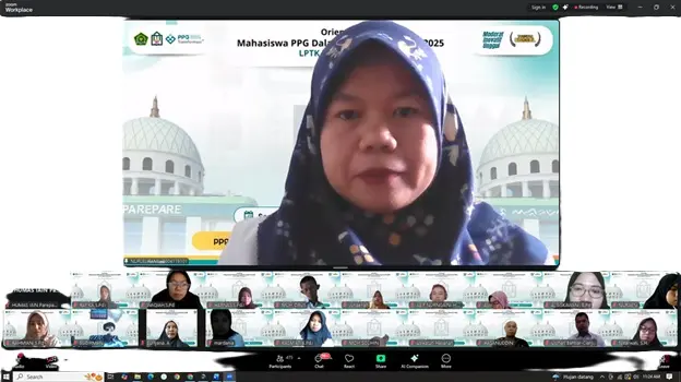 Humas IAIN Parepare - Institut Agama Islam Negeri (IAIN) Parepare secara resmi memulai kegiatan Orientasi Mahasiswa Pendidikan Profesi Guru dalam Jabatan (PPG Daljab) Batch IV Tahun 2025. Acara pembukaan yang diikuti oleh 499 peserta dari berbagai daerah ini diselenggarakan secara daring melalui platform Zoom pada, Senin (4/11/2025), dihadiri oleh Rektor IAIN Parepare, Wakil Rektor I IAIN Parepare, Ketua Prodi PPG, Dekan serta para Wakil Dekan Fakultas Tarbiyah menandai komitmen IAIN Parepare sebagai Lembaga Pendidikan dan Tenaga Kependidikan (LPTK) yang dipercaya oleh Kementerian Agama.