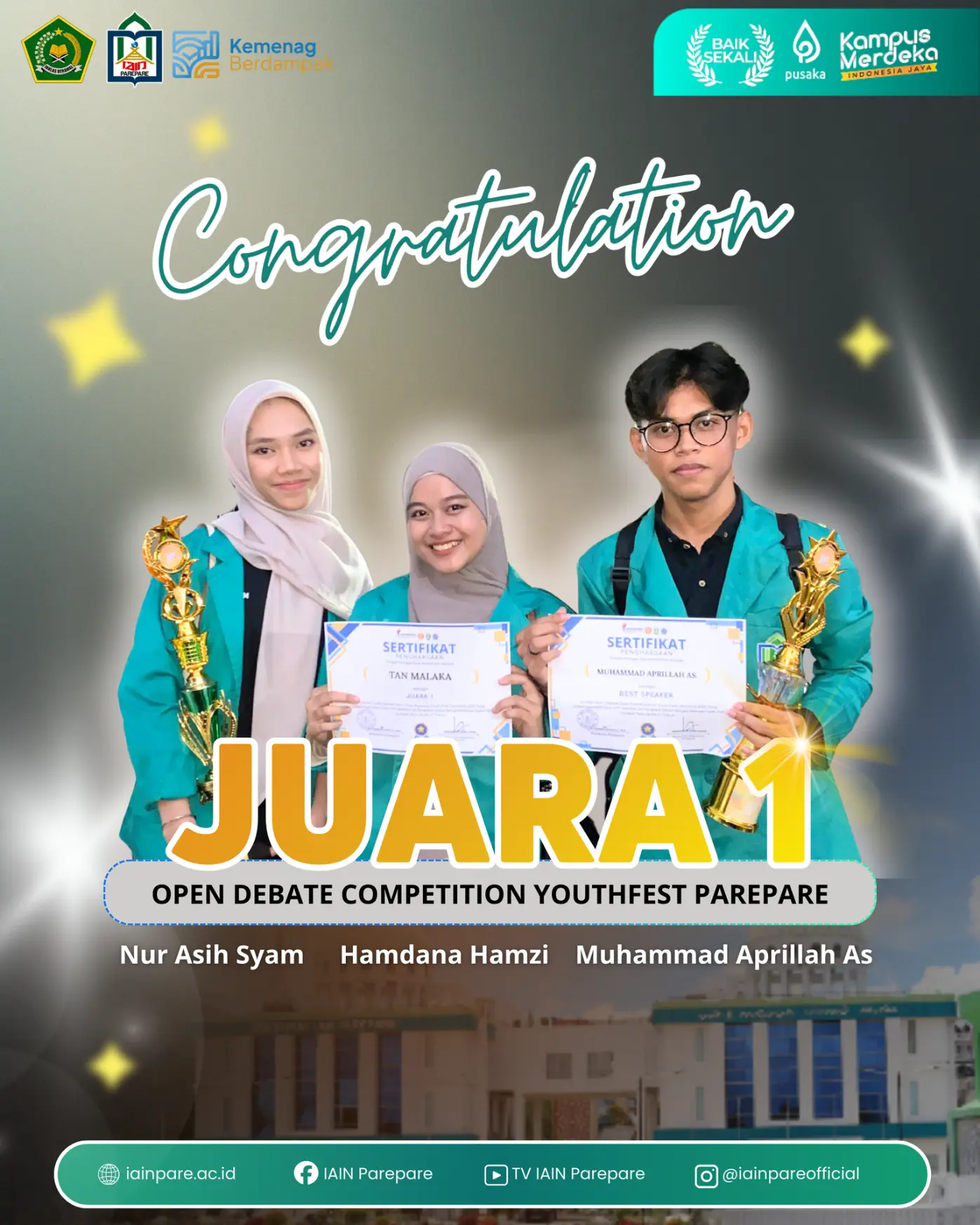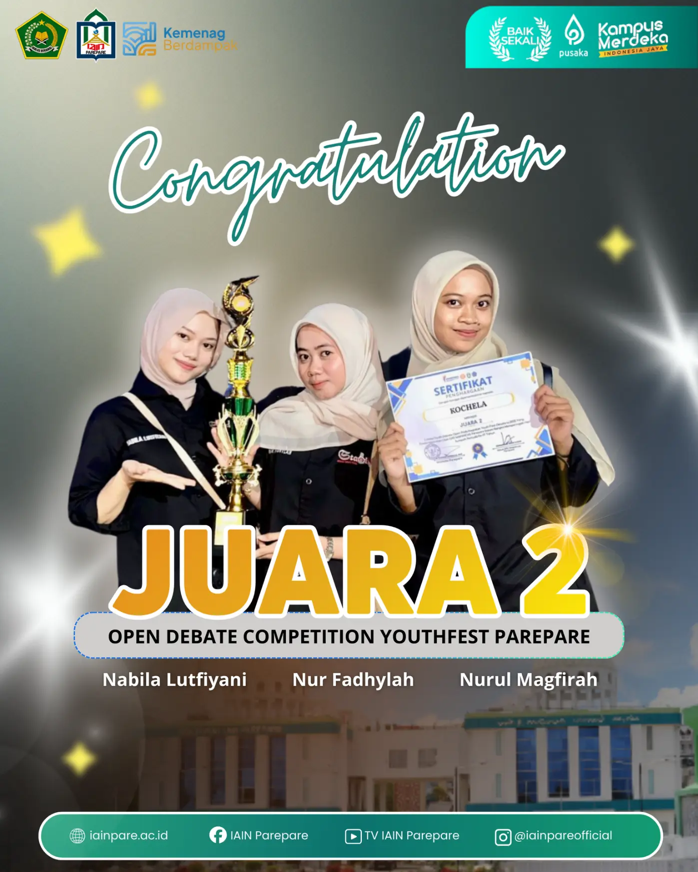 Mahasiswa IAIN Parepare Sabet Juara 1 dan 2 di Open Debate Competition Youthfest Parepare 2025